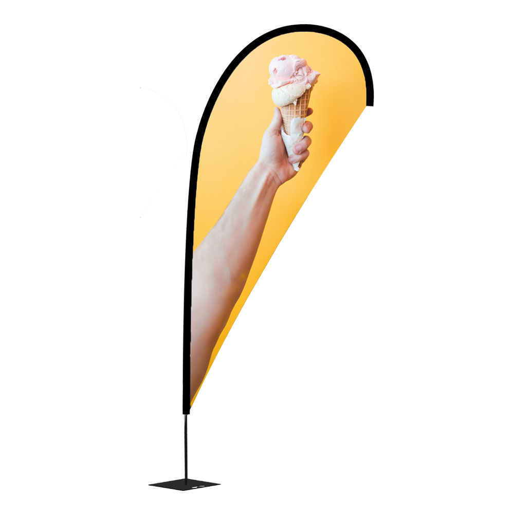 Der Beachflag Drop Extra Small Austauschdruck ist die ideale Lösung für platzsparende und dennoch auffällige Werbung. Perfekt für Messen, Events oder den Point of Sale, zieht sie mit ihrer geschwungenen Tropfenform die Blicke auf sich. Dank des hochwertigen Sublimationsdrucks kommt Ihre Werbebotschaft brillant zur Geltung. Die leichte und stabile Konstruktion ermöglicht einen schnellen Auf- und Abbau sowie einen einfachen Transport.